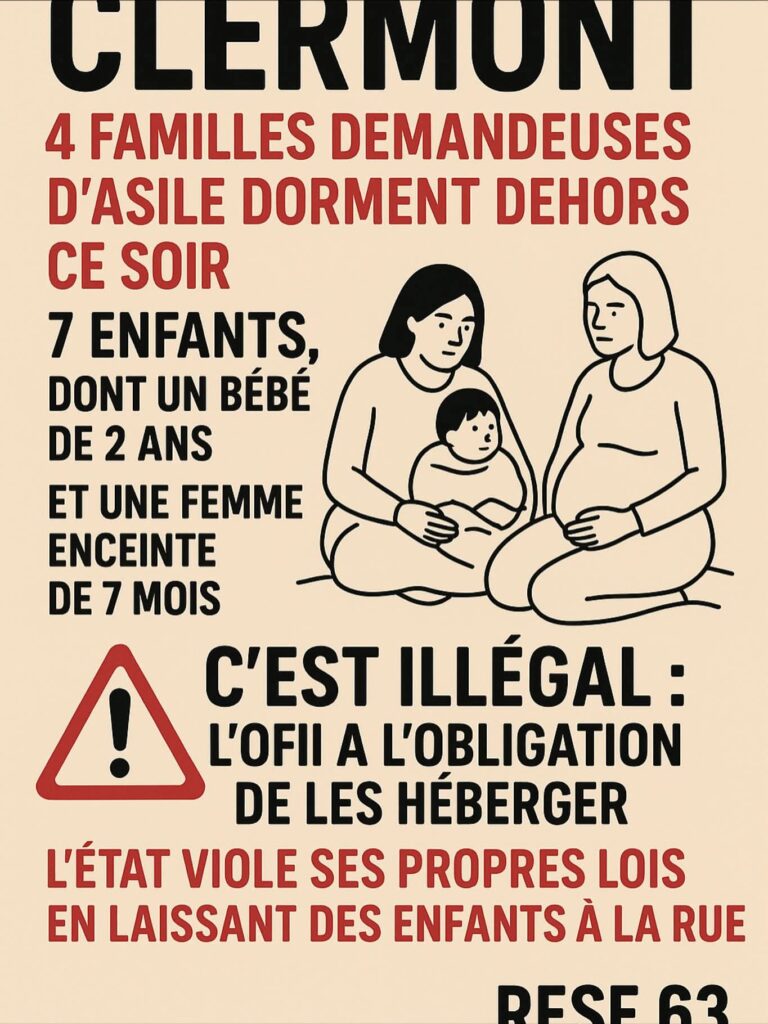 A Clermont-Ferrand, le zèle préfectoral ne se fait pas attendre : une mère et sa fille de 7 jours sont sorties de l’hébergement d’urgence et se retrouvent à la rue. …/…