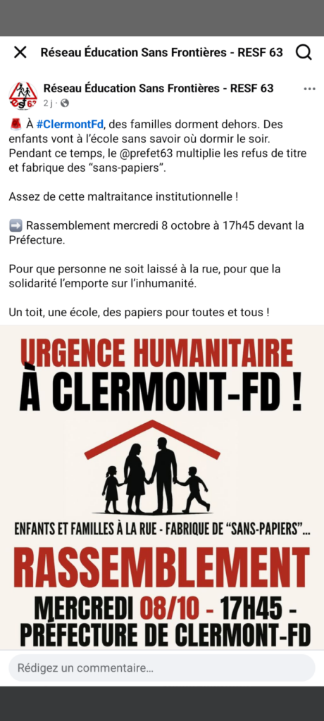 Des décisions administratives plongent des enfants et des femmes vulnérables dans la détresse et le danger. RESF 63 demande au préfet de revenir immédiatement sur ces décisions et de mettre fin à ces drames humains.