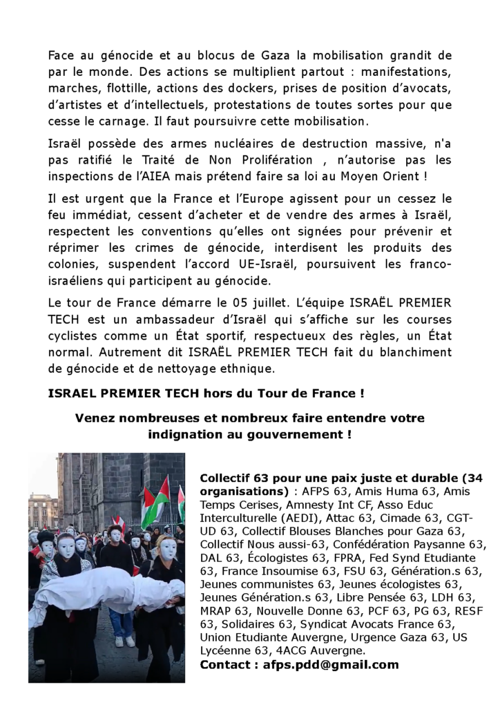 Nous rendons un hommage appuyé à toutes celles et tous ceux qui, médecins, infirmières et infirmiers, journalistes, tentent d’aider la population de Gaza ou de témoigner au prix, souvent, de leur vie.