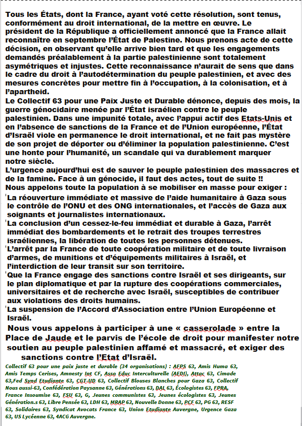 …/… La destruction presque complète de Gaza, l’occupation militaire, l’aggravation de la famine, des dizaines et dizaines de morts chaque jour – à 83 % des victimes civiles comme le reconnait l’armée israélienne elle-même –, des bombardements visant des hôpitaux, des journalistes sciemment assassinés, une Cisjordanie meurtrie et soumise à la croissance illimitée de la colonisation : nous sommes en face d’un crime d’effacement du peuple palestinien et de son aspiration légitime d’exister comme peuple souverain jouissant de droits garantis, du droit d’avoir des droits, au fondement même de l’égalité entre les peuples.