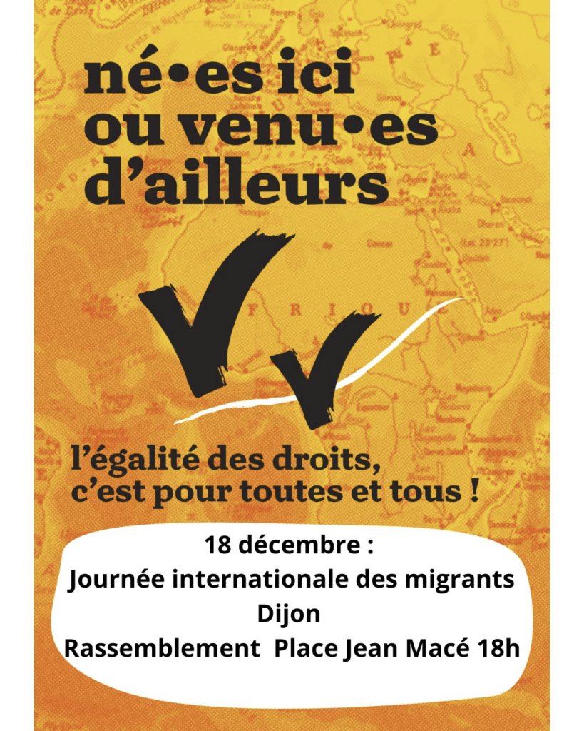 ACAT Dijon ; Action Catholique Ouvrière ; AFRANE Bourgogne ; AGIR abcd 21 ; AIDES Bourgogne Franche Comté ; Amis de la Confédération Paysanne ; Amnesty International Dijon ; APF France Handicap ; ATTAC21 ; ATMF Dijon ;CFDT 21 ; CGT 21 ; Club Unesco Dijon ; CCFD -Terre Solidaire ; Cent pour un toit 21 ; CNT 21 ; Collectif du lycée d’accueil international Le Castel ; Confédération Paysanne ; Confédération Syndicale des Familles ;Espace Autogéré des Tanneries ; FCPE ; FSU 21 ; LVN personnalistes et citoyens ;LDH Ligue des Droits de l’Homme ; Maison Phare ; MAN ; Mouvement de la Paix ; MRAP ; Pastorale des Migrants ; PNS Bourgogne Mali ; RESF 21 ; SAF ; SNES FSU ; SOS Refoulement ; SOS Racisme ;Solidaires ; Solidarité afghane ; Sud santé sociaux ; UJFP ; UNEF ;Cimade ; ; OXFAM ; ATD quart monde ; DAL