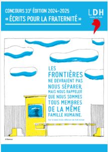 Chaque année, depuis 1991, la Ligue des droits de l’Homme organise le concours national « Ecrits pour la fraternité », anciennement appelé « Poèmes et lettres pour la fraternité ». Le concours est ouvert aux classes de grande section de maternelle, de primaire, de collège, de lycée, d’établissement spécialisé mais aussi aux centres de loisirs et aux individuels. En proposant aux enfants et jeunes de s’exprimer librement sur un thème lié aux droits et libertés, notre association souhaite apporter sa contribution à la formation de celles et ceux qui seront les citoyen-ne-s de demain. Pour plus d’informations, consultez ci-dessous la page dédiée à la thématique de cette année.