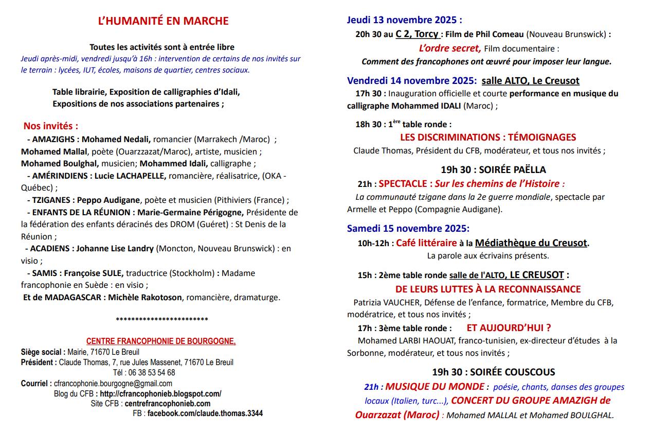 Organisées par le Centre Francophonie Bourgogne, en partenariat avec notre section LDH et le comité local Femmes Solidaires. Le programme :