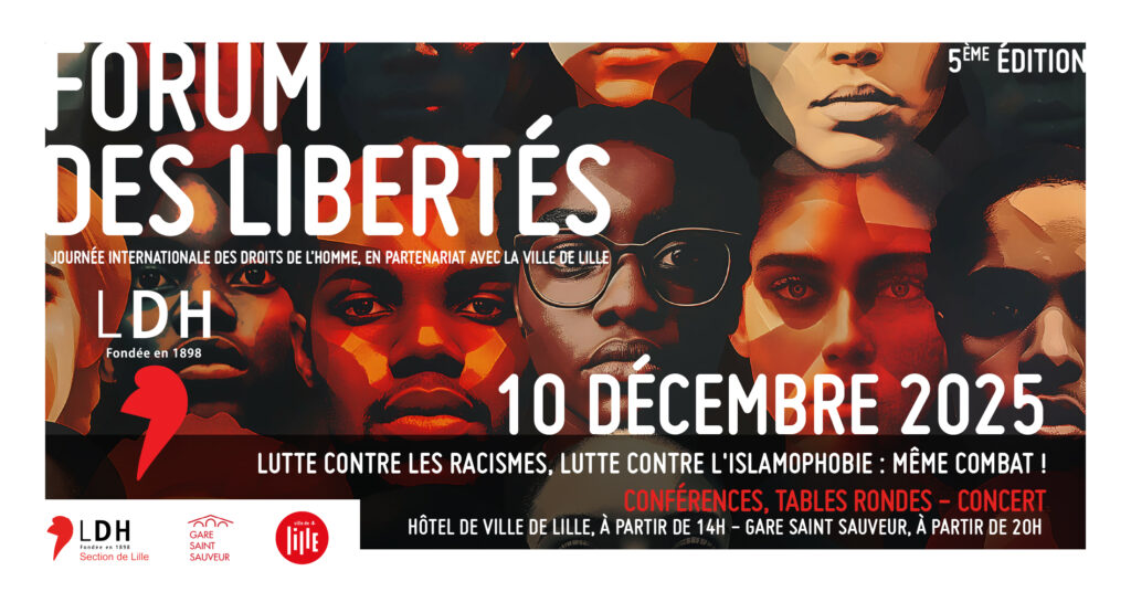 Le 10 décembre 2025, jour anniversaire de la Déclaration Universelle des Droits de l’Homme, approche. Cette année a lieu la 5ème édition du Forum des Libertés de la section de Lille, sur le thème de l’islamophobie et des discriminations liées à l’origine.