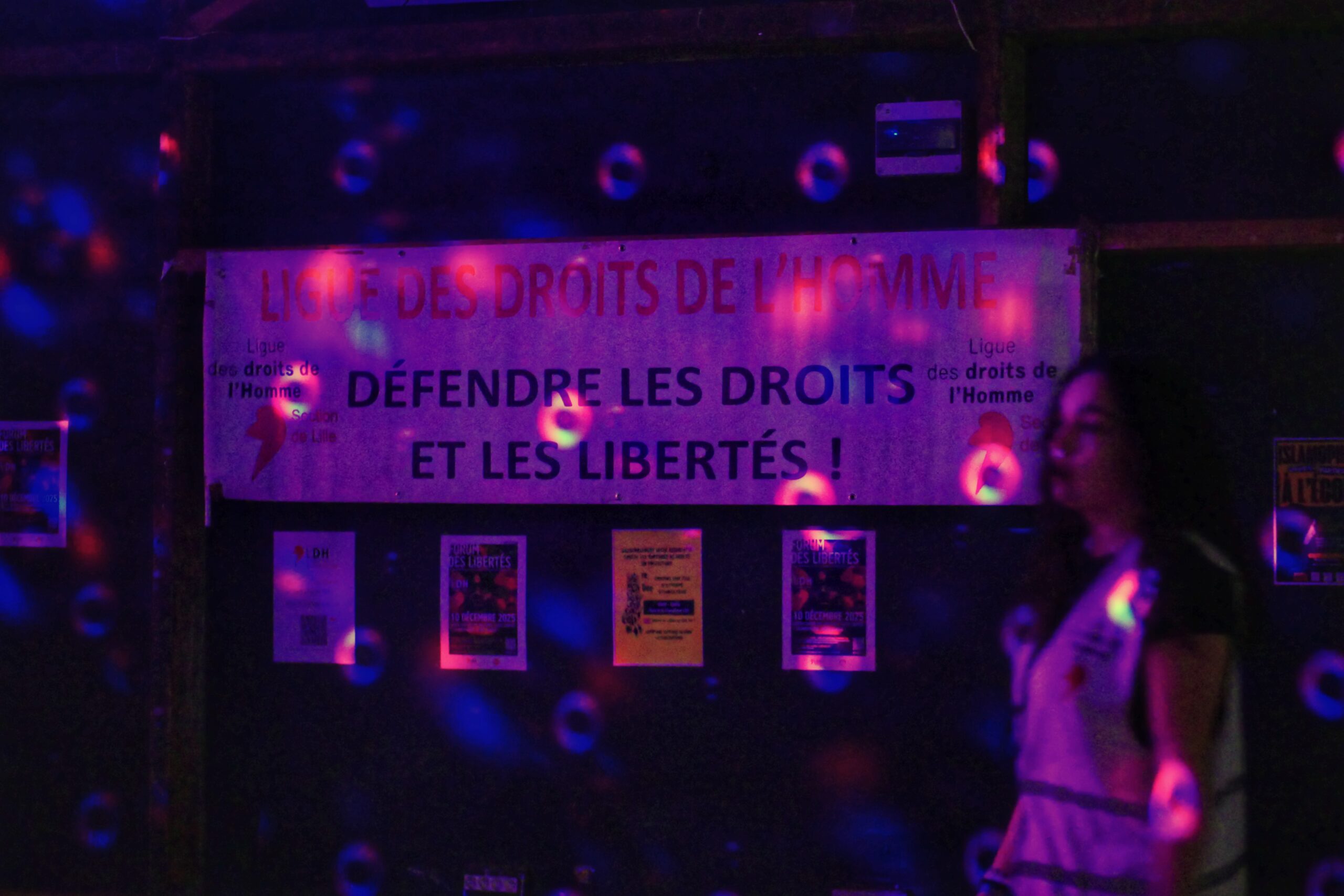 Pour clôturer la journée, la LDH, en partenariat avec la Gare Saint Sauveur, organisait un concert solidaire au Bistrot St So. Plus de 300 personnes se sont jointes à la fête pour rappeler que les droits étaient indivisibles, et que si l’un d’eux était attaqué, c’était l’ensemble de nos droits qui étaient en danger. Les artistes ayant rapidement répondu à notre appel à faire de cette journée une fête ont mis le feu à la scène. Que ça soit le son punk des Vaginites, le rap enflammé de PunchLyn, ou bien la pop colorée de Fluo Sauvage, leurs performances ont envoyé un puissant message d’unité et d’égalité. Avant les concerts, le Collectif des Sans Papiers 59 a tenu a rappeler que les droits devaient concerner tout le monde, y compris les personnes sans papiers, puis l’association Contrepoing a appelé à dénoncer les violences sexistes et sexuelles dans tous les lieux où celle-ci se manifeste.
