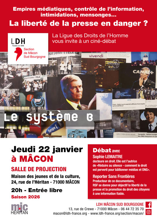 CINÉ-DÉBAT : LA LIBERTÉ DE LA PRESSE EN DANGER ? le 22 JANVIER à la MJC Héritan