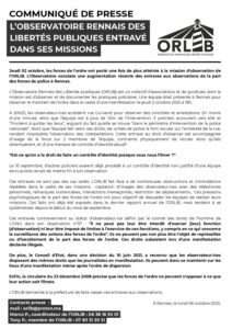 CP ORLIB suite aux entraves à l’observation de la manifestation du 2 octobre 2025